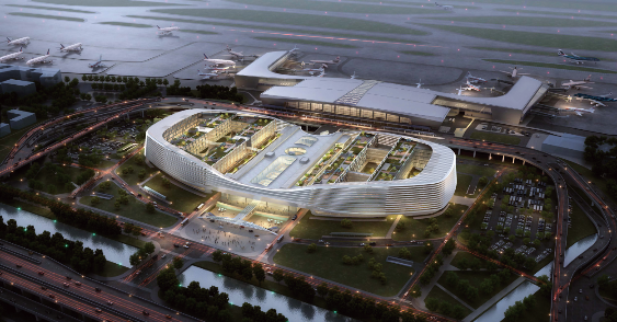 温州龙湾国际机场交通枢纽综合体工程包括温州机场交通枢纽综合体、温州市域铁路S1、S2线机场站及区间隧道、温州机场高架进出场线及地面道路部分。工程总造价约35亿元,工程建成后系统地实现轨道交通、高铁、地面及高架道路一体化的综合交通枢纽。同时,在建的温州机场交通枢纽与远期开发的温州高铁东站、温州轨道交通M2线可实现零换乘,大大提升出行效率。